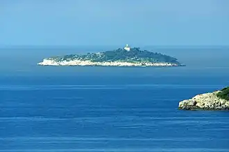 Sveti Andrija (Croatian for "Saint Andrew") is an island in the Croatian part of the Adriatic Sea. It is part of the Elaphiti Islands archipelago, Dalmatia and is situated 6 nautical miles (11 km) from Dubrovnik, 3 nautical miles (6 km) from Koločep, 2 nautical miles (4 km) from Lopud and 4 nautical miles (7 km) from Šipan.[4] The island is 475 metres (1,558 feet) long, and its maximal width is 130 metres (430 feet), while its coastline is 1,130 m (3,710 ft) long. The total area of the island is 53,757 square metres (578,640 square feet), with a maximum height elevation of 57 m (187 ft) above sea level.[5]