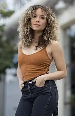 She was a member of the original Broadway cast of Memphis, working as a swing to cover eight tracks or roles, including those of both white and Black performers.[8] She was also a member of the original Broadway cast of Motown the 2012 revival of Evita.[4][8] She played Alex in the US touring company of Flashdance.[9] She appeared previously opposite Dean in the original Broadway cast of American Psycho.[5] She played the title role in An Octoroon in the 2017 Berkeley Repertory production.[10] In February and March 2020 she appeared opposite Billy Harrigan Tighe in the pre-Broadway tryout of The Secret of My Success at the Paramount Theatre; the production was cut short by the coronavirus pandemic.[11][12]