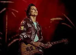 Brian Elwin Haner Jr. (born July 7, 1981), better known by his stage name Synyster Gates or simply Syn, is an American guitarist, best known as the lead guitarist of heavy metal band Avenged Sevenfold. He ranks No. 9 on Guitar World's best metal guitarists of all time.[1] Gates was voted as Best Metal Guitarist in the World by Total Guitar in 2016 and once again in 2017.[2][3]