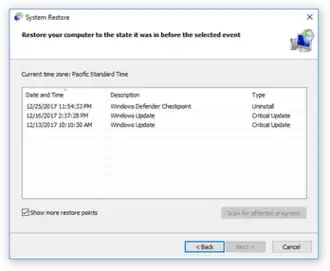 ![]() The System Restore wizard in Windows 10 | |