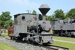 There are number of narrow gauge locomotives and other items of rolling stock on display outside at the museum.