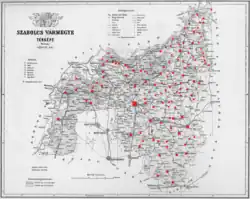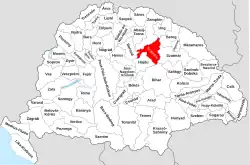 In the 1850 reforms which followed the revolutions of 1848 the Hajdú district was attached to Szabolcs.[1] In the reforms of 1854 Szabolcs lost its western territory, including the Hajdúkerület and the later Dada alsó district (the salient along the Tisza) to the newly-established North Bihar county.[2]: V [3]: 28 The traditional counties of Hungary were restored in 1860, reversing these changes.