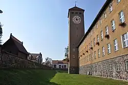 After the war, the town's life was organized anew. In 1946-1948 new schools were founded, including a pedagogical school, a vocational school and a school for kindergarten teachers.[26] In 1947 a public library was founded[27] and in 1954 a culture center was established.[26] Since 1948, the town hall, besides the local administration, also houses the Masurian Museum in Szczytno (Muzeum Mazurskie w Szczytnie).[8]