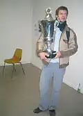 The Szpilman Award is initiated, financed and organized by German-based art group Szpilman. It was founded in 2003.[2] Initially only people from Germany could apply. Regulations were changed in 2004 and opened the call for Europe. The public interest in the prize raised. In 2006 Szpilman abolished any restrictions: everyone from all over the world[3] can apply now for the Szpilman Award. The winner is chosen by a panel of up to 10 independent judges including the winner of the previous year. The prize is accompanied with a dynamic cash award (sum of money collected by members of the jury parallel to the competition, called "Jackpot Stipendium"), a trip to Cimochowizna (Poland), and a challenge cup whichwill be handed over to the next prize winner in the subsequent year.[4]