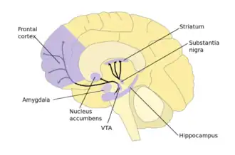 The nucleus accumbens (NAc) has a significant role in addiction. In the nucleus accumbens of mice, repeated cocaine exposure resulted in reduced TET1 messenger RNA (mRNA) and reduced TET1 protein expression. Similarly, there was a ~40% decrease in TET1 mRNA in the NAc of human cocaine addicts examined postmortem.[29]