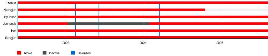 In January 2023, their agency P Nation announced through their official fancafe that member Junhyeok would be temporarily halting activities due to health concerns.[7]