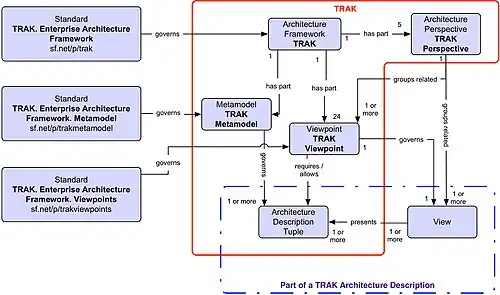 - TRAK Enterprise Architecture Framework Metamodel document.[6] This defines the architecture description elements that can appear in a viewpoint definition.