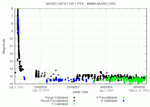 - AAVSO: Quick Look View of AAVSO Observations (get recent magnitude estimates for T Pyx)