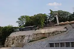 Almost two millennia ago, Romans were extracting stone from the quarry located in the area for the building of Belgrade's predecessor, Singidunum and for many surviving sarcophagi from that period.[10] It was recorded that the Romans used this stone for the construction of the city's aqueduct in 69 AD.[11] The castrum of Singidunum had tall walls, built from the white Tašmajdan limestone. After the Slavs settled in the area, because of the white stones of the fortress they named the city Beligrad, or "white city".[12]