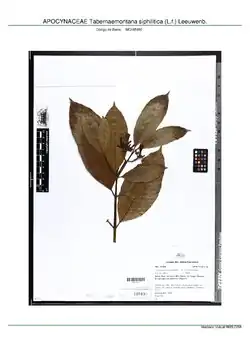 - ^ Botanic Gardens Conservation International (BGCI).; IUCN SSC Global Tree Specialist Group. (2021). "Tabernaemontana siphilitica". IUCN Red List of Threatened Species. 2021: e.T145699447A145699449. doi:10.2305/IUCN.UK.2021-3.RLTS.T145699447A145699449.en. Retrieved 27 November 2024.