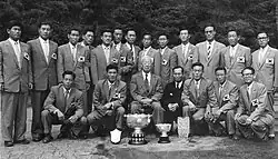 In 1921, the first All Joseon Football Tournament was held, and in 1928, the Joseon Football Association was organized, which created a foundation to disseminate and develop football in Korea.[6] Korean teams participated in competitions with Japanese teams from around 1926; Joseon Football Club became a de facto national team for Koreans, and won the 1935 Emperor's Cup.[5] Koreans also played for the Japan national team, most notably Kim Yong-sik who played for Japan at the 1936 Summer Olympics.[7]