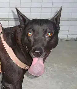 The Taiwan Dog (Chinese: 台灣犬) is a breed of small or medium dog indigenous to Taiwan. These dogs are also known as the Formosan Mountain Dog.[1] Taiwan Dogs have been genetically traced back between 10,000 and 20,000 years ago, making them one of the oldest and most primitive dog breeds in the world.[2] They are well-adapted to the uneven and thickly forested terrain of Taiwan, having become a semi-wild breed prior to the arrival of several colonial reigns and foreign powers. Notwithstanding these adaptations, Formosans retained the potential to be trained and are now used as hunting dogs, guard dogs, stunt dogs, rescue dogs, or simply as companions.[3][4] Formosans are classified into one medium type and two small types.[5]