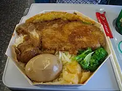Taiwan Railway Bento (Chinese: 台鐵便當; pinyin: Táitiě Biàndāng) are a type of ekiben (bento boxed meals) manufactured and distributed on Taiwan Railway at major railway stations and in train cars. It is estimated that, with five million boxed meals sold per annum, the annual revenue from bento distribution is 370 million NTD (approx. US$10 million).[1][2][3]