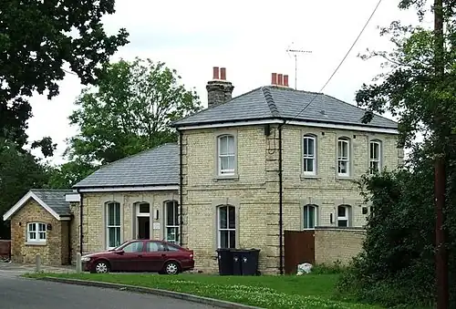 The railway line through Takeley was built by the Bishop's Stortford, Dunmow and Braintree Railway (BSD&BR). The line, including Takeley station, was opened on 22 February 1869, and on the same day the BSD&BR company was absorbed by the Great Eastern Railway.[2][3]