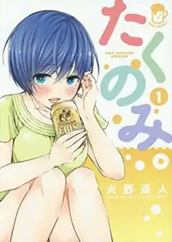 Takunomi is written and illustrated by Haruto Hino. It was serialized on Shogakukan's online app MangaONE and Ura Sunday website from August 19, 2015, to May 25, 2018.[5][6] Shogakukan collected its chapters in seven tankōbon volumes, released from December 18, 2015, to July 12, 2018.[7][8]