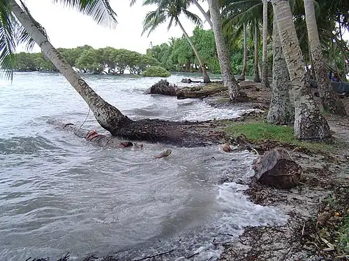The islands in the atoll are very low-lying, about a metre (three feet) above the high tide mark. Local rise in sea level has been noticed by the people of Takuu and by Richard Moyle, a University of Auckland ethnomusicologist who studied the atoll for 17 years. It is, however, much lower than the publicised 20 centimetres (7.9 in) a year. Two scientists (Scott Smithers and John Hunter) who visited the atoll in November and December 2008 say it does not appear to be sinking due to tectonic activity.