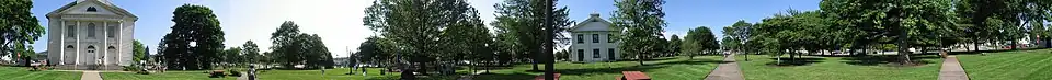At the center of the town is the Historic Tallmadge Church (built in 1825), recognized as a historic place by the Ohio Historical Society, and was featured on the cover of the November 20, 1944, edition of Life magazine.[18] An intersection surrounds the church and a small park, the Tallmadge Circle Park, on which the church sits. The Circle Park is also home to Tallmadge's Old Town Hall (established 1859), which houses a museum on its second floor. In 2003, a new steeple was placed atop the Old Town Hall, replacing the original which had been removed decades earlier.
