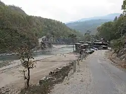 The second section of the road runs in Bagmati Province. it starts at Khurkot extracting from NH13. It crosses the Sunkoshi River and enters into Ramechhap District. It runs along the Sunkoshi river towards Benighat. Tamakoshi River confluences with Sunkoshi River at Benighat. From Benighat the road runs along the Tamakoshi river up to Khimti via Manthali. At Khimti the road crosses the Khimti Khola (Khola=small river) and enters into Dolakha District. It continues to follow the Tamakoshi river up to Tamakoshi Bazar where it terminates being merged with NH23. The road again starts at Charikot extracting from the NH23 and runs towards Lamidanda passing Dolakha Town. It again follows Tamakoshi River from Lamidanda and continue runs through mountains, jungle, (Gaurishankar Conservation Area) up to the Nepal-China border, Lapchegaun.[4]