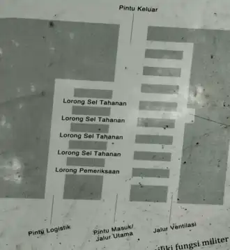 Because of its strategic and hidden location, this cave was repurposed for military use during World War 2, housing a military radio station for its safety from air raids. In early 1941, the cave was refurbished to serve as a military stronghold and a base of operations. The cave consists of 15 hallways in a grid-like arrangement, with 3 metal doors measuring 3.2 metres tall each. A pair is located on each end of the main tunnel, with a third door used for logistics placed to the side. The cave and its surroundings occupy an area of 0.6 hectares, and the total floorspace inside the cave itself measures to 547 square metres. A security post is located near the entrance[3]