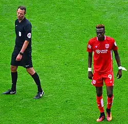 On 31 January 2017, Abraham scored his 16th Championship goal in a 2–2 draw against Sheffield Wednesday, which saw him break the record of former Fulham striker Moussa Dembélé for the most goals scored by a teenager since the beginning of the Football League Championship era.[17] Abraham ended the season with 23 goals to his name, second only to Chris Wood of Leeds United, as City completed the campaign in 17th position, thereby avoiding relegation.[18] His performances throughout the season also earned him Bristol City's Player of the Year, Young Player of the Year and Top Goalscorer awards. In doing so, he became the first ever player to earn all three awards in the same season.[19]