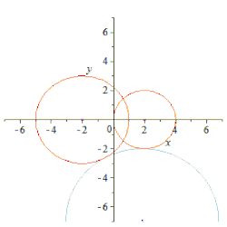 Two circles are mutually and externally tangent if distance between their centers is equal to the sum of their radii[1]