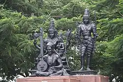 34 bronze statues, are installed on high platforms, of people who played iconic role in the development of Hyderabad and Telugu culture along the Tank Bund road.[2] The statues were installed by the then Chief Minister of Andhra Pradesh, N. T. Rama Rao. A committee with members from various regions of then Undivided Andhra Pradesh shortlisted the personalities whose statues were to be installed.[3]