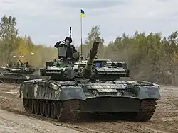 Tanks of the Ukrainian Army have been used within the military, with their usage and origin after the Cold War; and the modern era.[1] This includes tanks manufactured in Ukraine, leftover Soviet tanks in the Ukrainian Ground Forces today as well as designs imported from other countries and tanks captured in the Russo-Ukrainian War.[2]