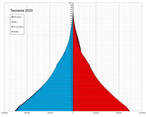 ![]() Population pyramid of Tanzania in 2020 | |