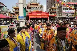The status of daoshi, or 'Taoist master', is traditionally attributed only to clergy in Taoist organizations, who distinguish between their traditions and others in Chinese folk religion.[9] Though generally lacking motivation for strong hierarchies, Taoist philosophy has often served as a theoretical foundation for politics, warfare, and Taoist organizations.[10] Taoist secret societies precipitated the Yellow Turban Rebellion during the late Han dynasty, attempting to create what has been characterized as a Taoist theocracy.[11]