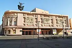 The city hosted the relocation of Ukraine's first national theatre to Dnipropetrovsk in 1927.[1][3] During the 1930s, a number of nationally recognized directors were produced. More than 300 performances were held at the front by two concert groups under the direction of principal directors Kobrynsky and Zinaida Khrukalova during World War II.[6][7] The performers were relocated to Kazakhstan during the war, where they carried on with their job. Specifically, they performed in over 300 performances near the front. The theatre then made its way back to Dnipro.[2]