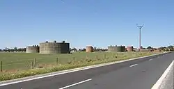Early in World War II, RAAF No. 12 Inland Aircraft Fuel Depot was established at Wolseley, with an initial capacity of 1.27 megalitres (280,000 imp gal; 340,000 US gal) in three tanks camouflaged to look like farm buildings. The depot started operations in 1942 and three additional tanks were added later. It was disbanded on 14 June 1944.[12] It is listed on the South Australian Heritage Register as the Wolseley Inland Aircraft Fuel Depot.[13]