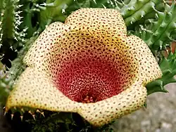 Phylogenetic studies have shown the genus to be most closely related to the genus Huernia, and to a widespread branch of stapeliads comprising the genera Orbea, Piaranthus and Stapelia.[5]