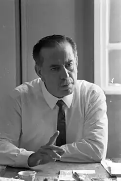 Toubi raised the issue of the right of return for Palestinian refugees on at least two occasions in the Knesset. After the 1948 Arab-Israeli War, he demanded that the inhabitants of al-Birwa be allowed to return to their homes, a request refused by David Ben-Gurion.[10] After the 1967 war, he requested from Moshe Dayan that the inhabitants of Yalo be allowed to return to their homes, but it too was denied.[11] In 2012, the discourses and articles of Tawfik Toubi were published in Israel by his wife Olga and his son Elias. Tawfik Toubi is accepted, honored and rewarded by the Israeli establishment.[12]