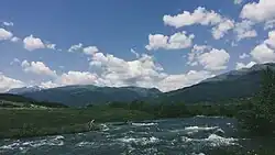The Tazha river valley is known for its pristine nature and offers favourable conditions for tourism and family recreation. There are beautiful waterfalls along the river and some of its tributaries, the largest of which are Kademliysko Praskalo (72 m),[3] located on its small left tributary, the Kademliyska reka, and Babsko Praskalo (54 m) on its left tributary the Babska reka.[2][4] Before leaving the Balkan Mountains, the river forms the remarkable 2.5 km long Tazha Gorge with slopes reaching height of 300–400 m.[2]