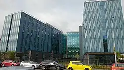The hotel, LivingSpace, was converted in 2011 from a building built in 1958 for leather tanning company Glendermid.[3] The university bought the hotel for $6.75 million in 2013.[4]