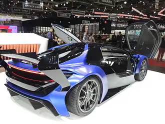 The Techrules AT96 is an electric sports car made by Techrules. Unlike most electric cars, it uses a multi-fuel (jet fuel, kerosene, natural gas, biogas) aviation turbine to charge the batteries.[1] It has 1030 hp and 6372 lb-ft (8369 nm) of torque, a 0–60 mph (0–97 km/h) time of 2.5 seconds, and a top speed of 218 mph (351 km/h).[2]