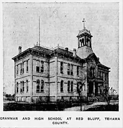 The history of Tehama County includes the January 1886 relocation of Red Bluff's Chinese population, followed by the August 1886 torching of Red Bluff's Chinatown by alleged arsonists.[7] The January 29, 1886, edition of The Daily Alta detailed 'The Anti-Coolie Move' and confirms that a secret anti-Chinese meeting was convened in the town of Tehama, and an organization established to relocate the estimated 2,000 Chinese in and around Vina. Secret daily anti-Chinese caucuses in Red Bluff were also held.[8]