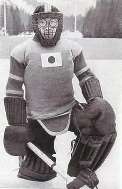 During the Olympics, Honma was one of the first goaltenders to wear a goaltender mask. In 1927, Elizabeth Graham, playing for the Queen's University women's ice hockey team, used a fencing mask at the insistence of her father.[3] Three years later, Clint Benedict, playing for the Montreal Maroons of the National Hockey League, used a leather mask to protect his broken nose.[3] He quickly discarded it, as the nosepiece obstructed his vision.[2] In contrast, Jacques Plante invented and started regularly using the first practical goaltender mask in 1959.[2] the last North American professional goaltender not to regularly wear a mask was Andy Brown, who played his last game maskless in 1974 (he retired in 1977).[4]