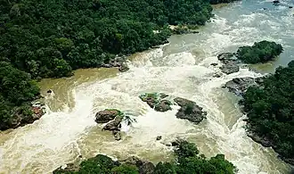 The Teles Pires (Portuguese: Rio São Manuel) is a 1,370 km (850 mi) long river in Brazil.[1] The river flows through the state of Mato Grosso and its lower part marks the border between the states of Mato Grosso and Pará. At its mouth it joins Juruena River and together they form the Tapajós, which is one of the biggest tributaries of the Amazon River. The most important settlement along the river is Alta Floresta. One writer says that it was originally called the Paranatinga, and was renamed after Captain Telles Pires who died exploring the river in 1889.[5]