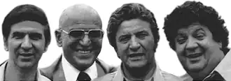 Kojak aired on CBS for five seasons from October 24, 1973, until March 18, 1978, with 118 episodes produced.[23] The role won Savalas an Emmy and two Golden Globes for Best Actor in a Drama Series. Co-stars on the show included Savalas's younger brother George as Detective Stavros, a sensitive, wild-haired, quiet, comedic foil to Kojak's street-wise humor in an otherwise dark dramatic series,[34] Kevin Dobson as Kojak's trusted young partner, Det. Bobby Crocker, whose on-screen chemistry with Savalas was a success story of 1970s television,[35] and Dan Frazer as Captain Frank McNeil.[36]