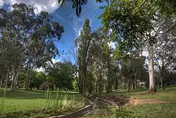 ![]() Telopea Park viewed along the stormwater drain from south to north | |