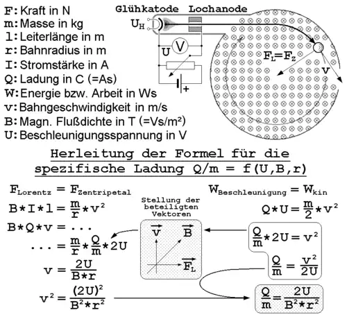 Since the charge of an electron is available from the Millikan experiment, the study of electrons in a magnetic field is the determination of its mass in accordance with: