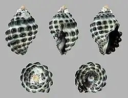 This globular shape, tight shell coiling, strong sculpture, a dentate outer lip and narrow aperture offers an added protection against shell-crushing predators, such as fishes and crabs.[2]