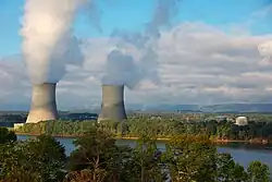 With a generating capacity of approximately 35 gigawatts (GW), TVA has the sixth highest generation capacity of any utility company in the United States and the third largest nuclear power fleet, with seven units at three sites.[1][15] In addition, they also operate four coal-fired power plants, 29 hydroelectric dams, nine simple-cycle natural gas combustion turbine plants, nine combined cycle gas plants, 1 pumped storage hydroelectric plant, 1 wind energy site, and 14 solar energy sites.[16] In fiscal year 2020, nuclear generation made up about 41% of TVA's total energy production, natural gas 26%, coal 14%, hydroelectric 13%, and wind and solar 3%.[16] TVA purchases about 15% of the power it sells from other power producers, which includes power from combined cycle natural gas plants, coal plants, and wind installations, and other renewables.[17] The cost of Purchased Power is part of the "Fuel Cost Adjustment" (FCA) charge that is separate from the TVA Rate. In addition, the Watts Bar Nuclear Plant is the only facility in the country to industrially produce tritium, which is used by the National Nuclear Security Administration for nuclear weapons, where it is used to supercharge and boost the explosive yield of the U.S. nuclear arsenal.[18]