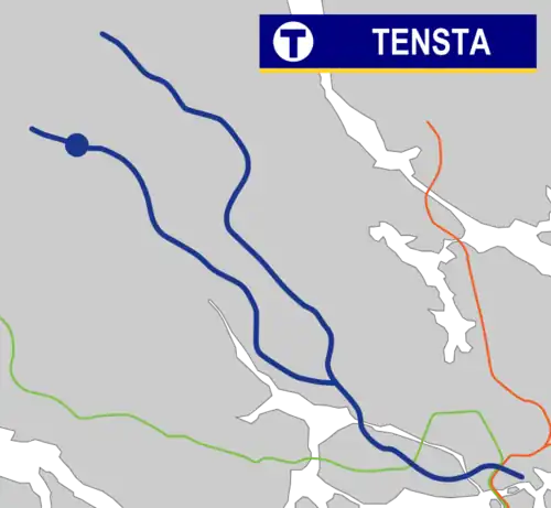 Tensta metro station is a station on the blue line of the Stockholm metro, located in the district of Tensta. The station was opened on 31 August 1975 as part the first stretch of the Blue Line between T-Centralen and Hjulsta. The trains were running via Hallonbergen and Rinkeby.[2] The distance to Kungsträdgården is 13.5 km (8.4 mi).