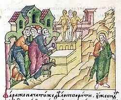 In the Christian tradition Abram left Haran after Terah died. The Christian views of the time of Terah come from a passage in the New Testament at Acts 7:2–4[16] where Stephen said some things that contrast with Jewish rabbinical views. He said that God appeared to Abraham in Mesopotamia, and directed him to leave the Chaldeans—whereas most rabbinical commentators see Terah as being the one who directed the family to leave Ur Kasdim from Genesis 11:31: "Terah took his son Abram, his daughter-in-law Sarai (his son Abram's wife), and his grandson Lot (his son Haran's child) and left Ur of the Chaldeans to go to the land of Canaan."[17] Stephen asserts that Abram left Haran after Terah died.[18]