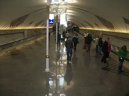 Teremky (Ukrainian: Теремки, ⓘ) is a station on the Obolonsko–Teremkivska Line of the Kyiv Metro system that serves Kyiv, the capital of Ukraine. The station opened on 6 November 2013.[1][2] It is the southern end of the line,[3] located just after the Ipodrom station.[4] The station is named after the Teremky neighborhood of Kyiv.