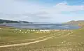The Khorgo volcano is located near the eastern end of the lake, 10 rivers join this lake and only the Suman River springs from it.[2] The lake is located in Khorgo-Terkhiin Tsagaan Nuur National Park. According to the joint 2022 study of Mongolia's Ministry of Environment and Tourism and World Wide Fund for Nature, the area of the lake decreased by 6.4% from 7950.0 ha in 1995 to 7440.1 ha in 2015. This resulted in reduction of wetlands areas by 23.5% and increase by 39.4% of sands and eroded lands surrounding the lake.[3]