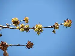 It is one of the most useful trees in India. Its leaves contain large amounts of gallotannins,[1] and are used in India for tanning and firewood.[2] The tree is the source of Indian gum, also known as ghatti gum, which is used for calico printing among other uses. The leaves are also fed on by the Antheraea paphia moth which produces the tassar silk (Tussah), a form of wild silk of commercial importance.[3]