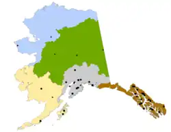 Principal loads for the utility are the city of Kodiak, Alaska (and adjacent unincorporated suburbs), and the U.S. Coast Guard base (and adjacent Kodiak Airport). The hydroelectric plant replaced earlier diesel engine generators, which are now used only for peak loads during the fish canning season. Kodiak Electric also operates six 1.5 MW wind turbines. Since the network is isolated from the North American grid, a 3 megawatt battery bank was also purchased to help stabilize system frequency on sudden changes of load or sudden shifts in wind.[2] It is the stated objective of the Kodiak co-op to obtain 95% of their electrical energy from renewable sources by 2020. The low cost of power generated by Terror Lake has stabilized the electrical rates for the city of Kodiak, since this displaces most of the oil that would otherwise be consumed by diesel generator sets.[3]